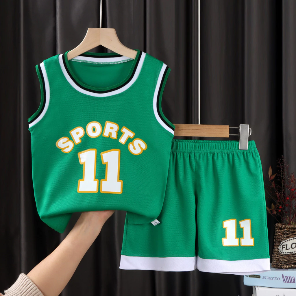 ชุดกีฬาเด็กสีเขียว แฟชั่นฤดูร้อน