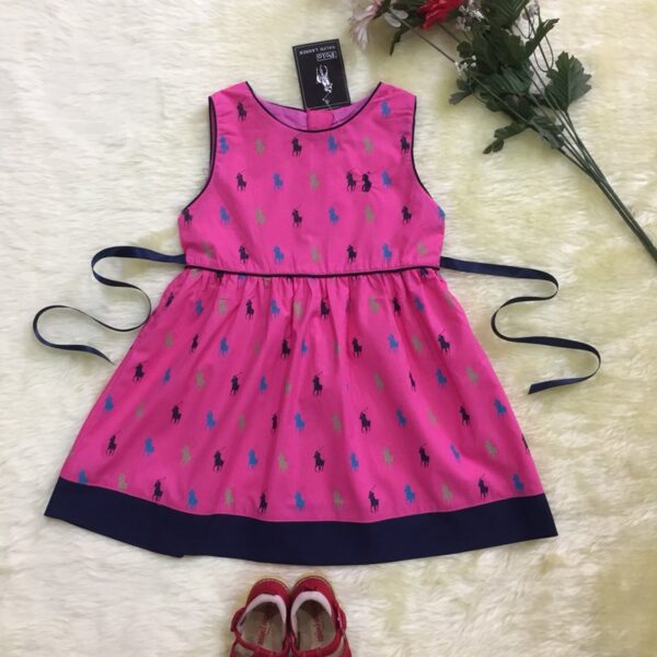 ชุดเดรสเด็กออกงานโปโล (POLO) เป็นชุดกระโปรงเด็กใส่ออกงาน สีชมพู แขนกุด หน้าอกด้านซ้ายปักโลโก้โปโล(สินค้าลิขสิทธิ์) มีลายม้าโปโลโทนสีน้ำเงินทั้งตัว มีจั้มที่เอวเล็กน้อย มีเชือกผูกโบว์ด้านหลัง หรูหรา คงทน ใส่สบาย การตัดเย็บดูเรียบร้อยสวยงาม